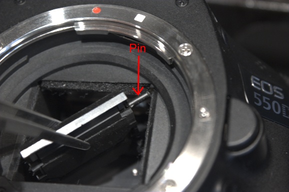 There are 2 choices. Either strip the camera right down to gain access to the mirror box - this is a very complicated procedure, removing all the circuit boards and could easily cause permanent damage to the camera. Or attempt to remove the mirror without dismantling the camera. I opted for the second approach but it does damage the mirror hinges and so it's an irreversible procedure. It will be very expensive to have a mirror refitted!