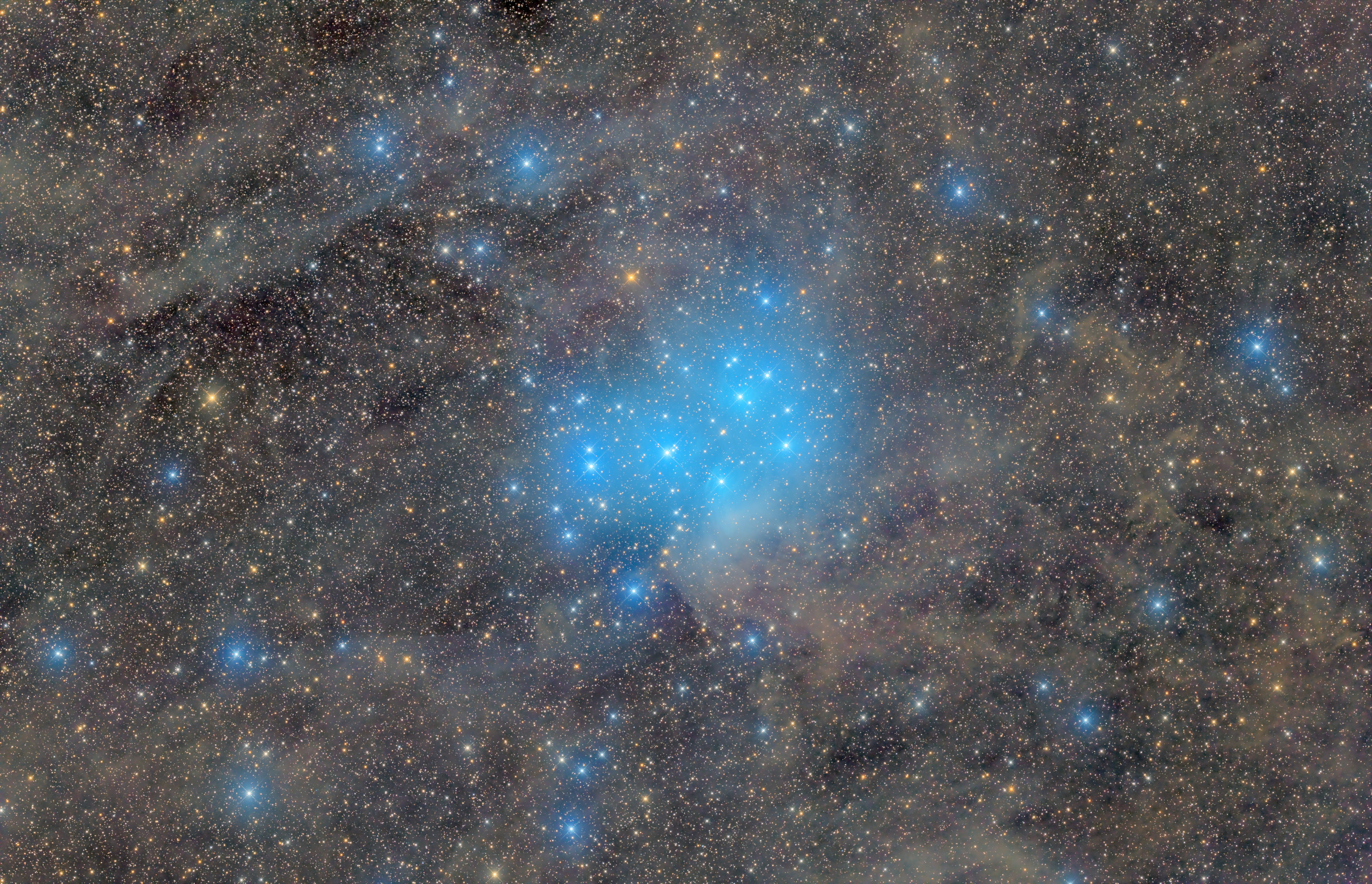 | Stacked in PixInsight, white balanced with SPCC, colour correction matrix applied and stretched with Arcsinh Stretch (to preserve hue and saturation) then sRGB gamma curve applied