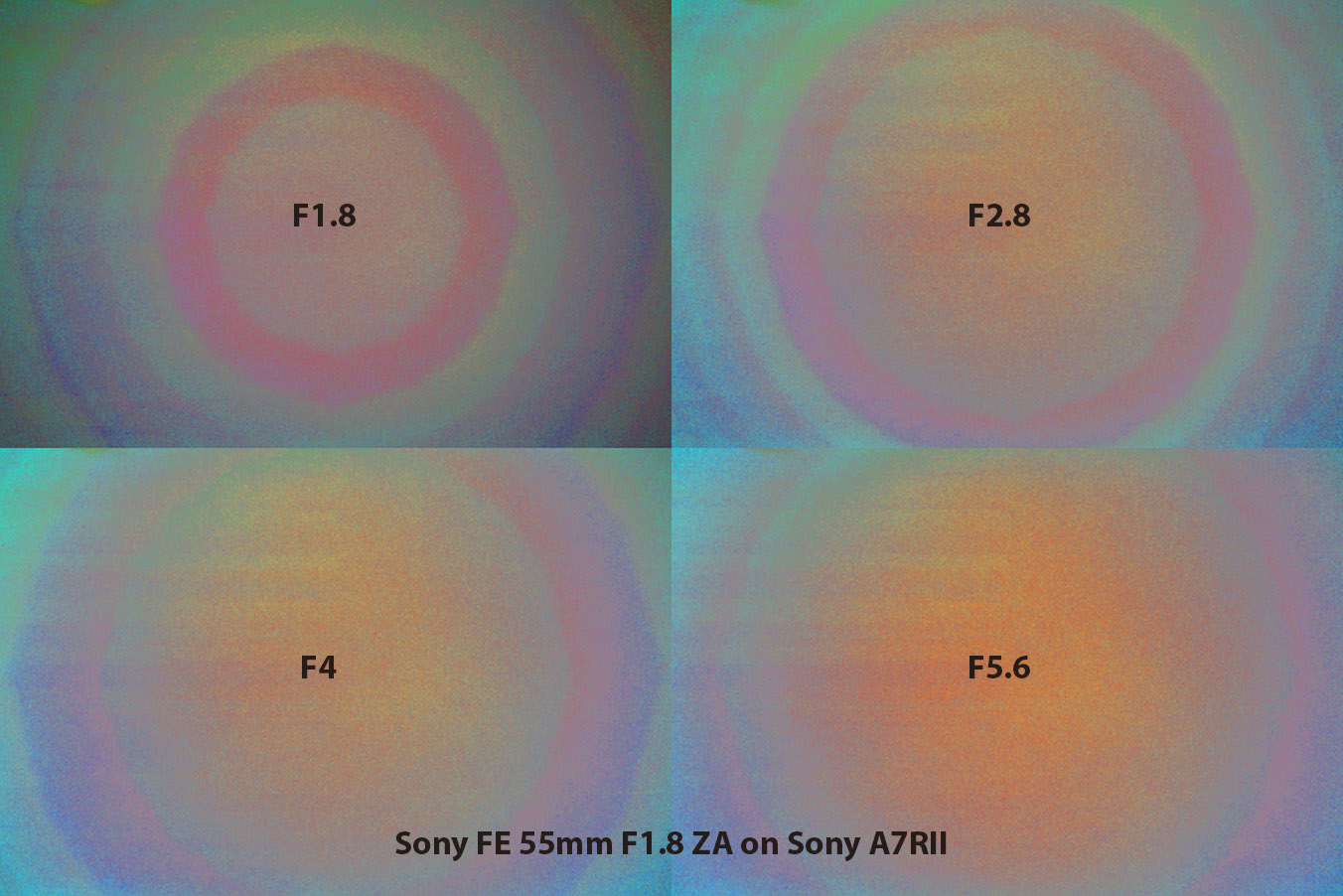 Here's a comparison of two "white sheet" images taken on a Sony A7III with a Sony FE 55mm F1.8 ZA lens at f/1.8:
