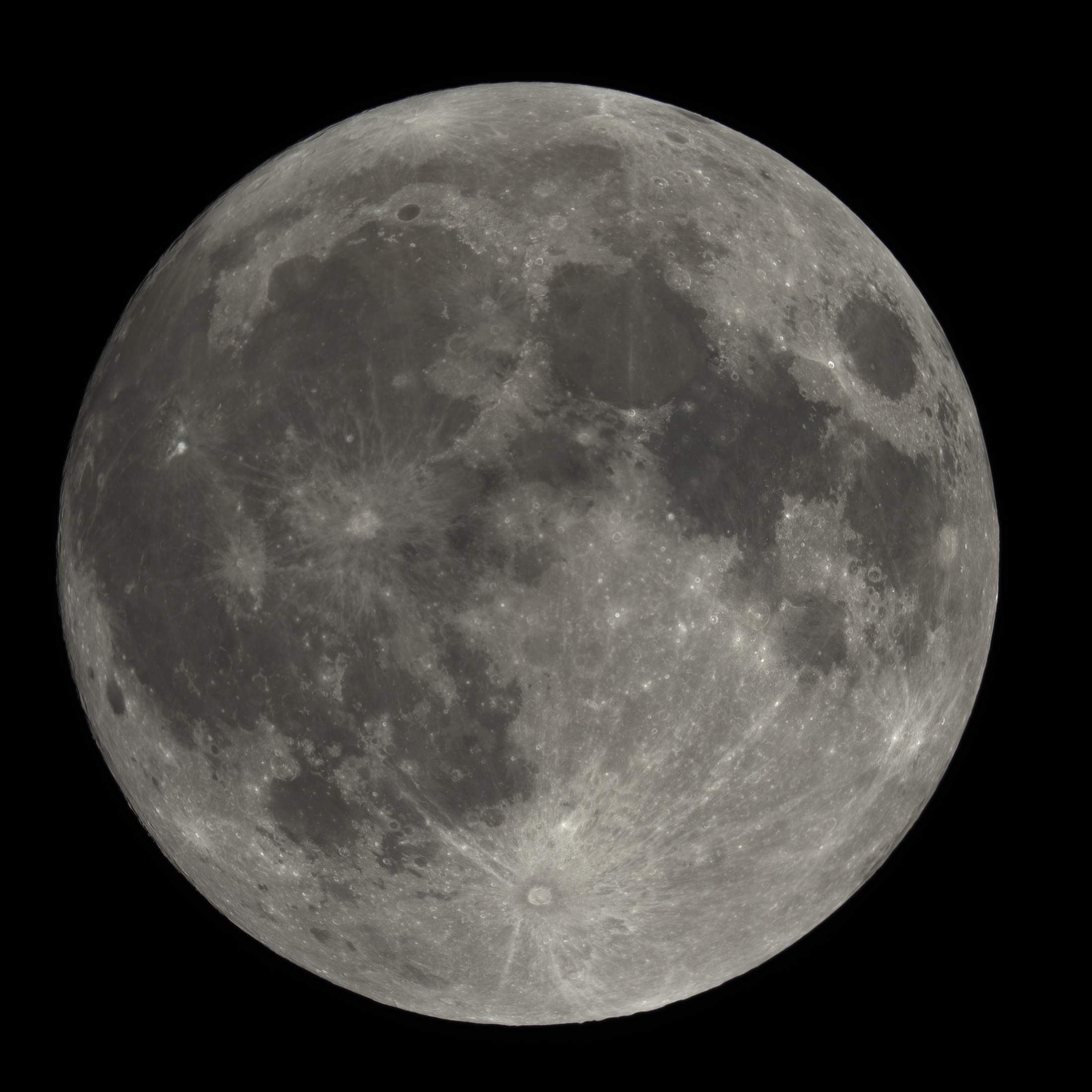 | Processing: | This is a mosaic of 9 pieces (because the corrected image circle of the Celestron C11 is not large enough). Each piece is created from 30 exposures of 1/1000sec at ISO 200 which are stacked in AviStack and then scaled to 2/3 before being deconvolved. The mosaic of 9 pieces was then assembled in Photoshop. |