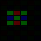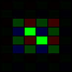 Since the red and blue channels behave exactly as previously, here is a diagram showing the green pixels only: