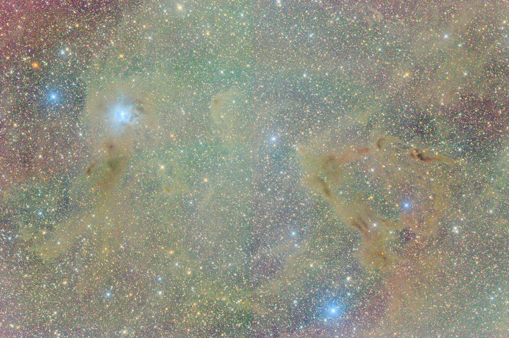 After using the Nikon Z6 for a couple of successful imaging sessions, the next stacked image (Iris Nebula and nearby dust clouds) showed some strange background coloured banding, together with an obvious left/right discontinuity: